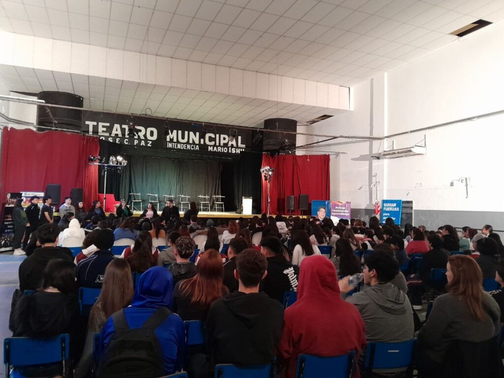 Más de 700 alumnos de distintas instituciones educativas del distrito, junto a sus docentes y directivos, asistieron al Teatro Municipal para disfrutar de las dos funciones de la obra “Un día más”, sobre el bullying, llevada a escena por el elenco de teatro municipal.