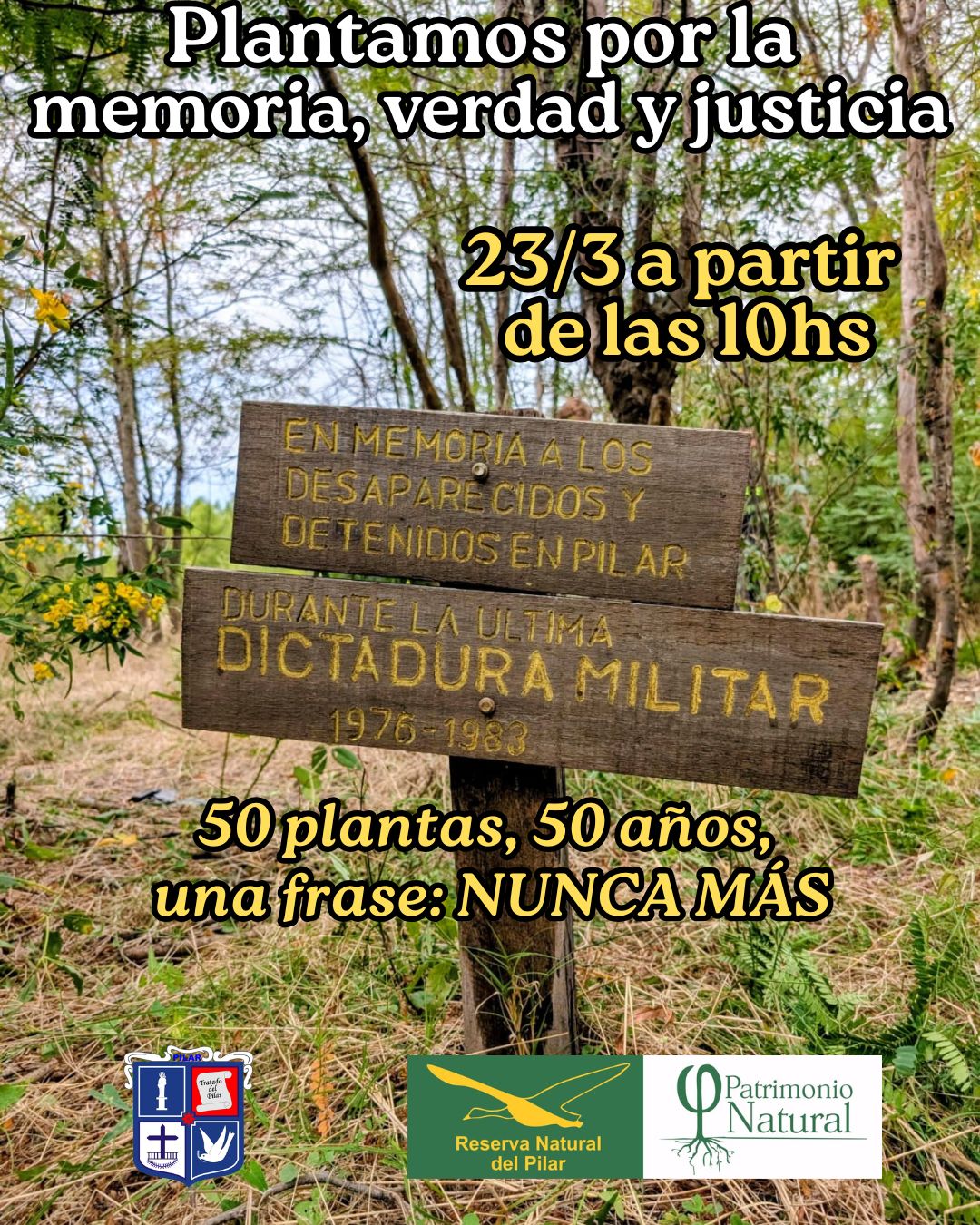 Lunes 23 de marzo desde las 10 hs Bosque de la Memoria en Reserva Natural del Pilar.